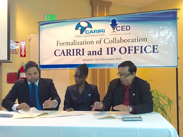 On December 21st, 2015, the Caribbean Industrial Research Institute (CARIRI) and the Intellectual Property Office (IPO) of the Ministry of the Attorney General and Legal Affairs renewed their commitment to formalize and promote collaboration between the agencies via the signing of a Memorandum of Understanding.