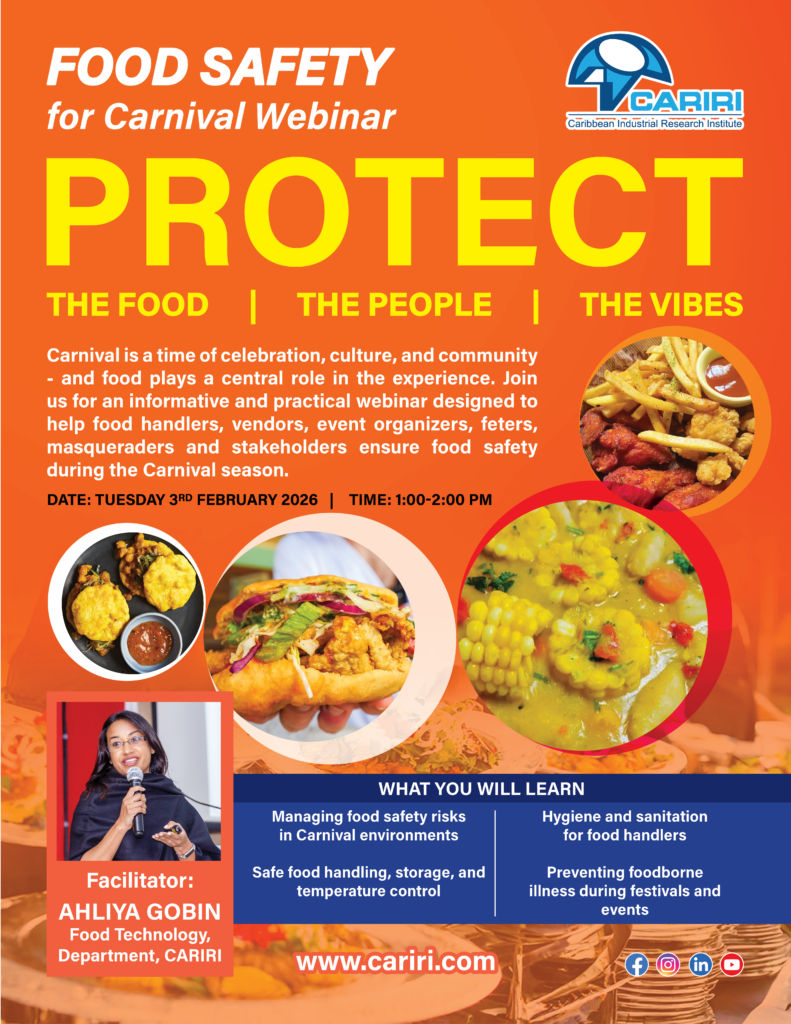 For over 50 years, CARIRI has been working with players throughout the food chain, assisting them in improving their practices so that they provide safer foods to consumers. The Unit works with other agencies locally, regionally and internationally in a collaborative effort to improve the food industry and align the Caribbean region to the competitive international arena.